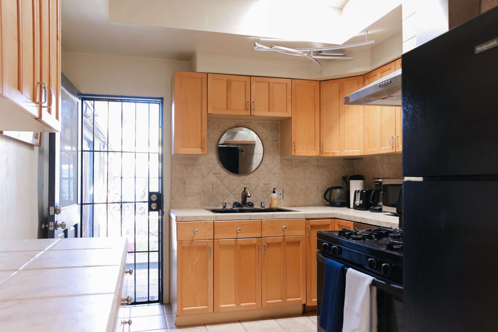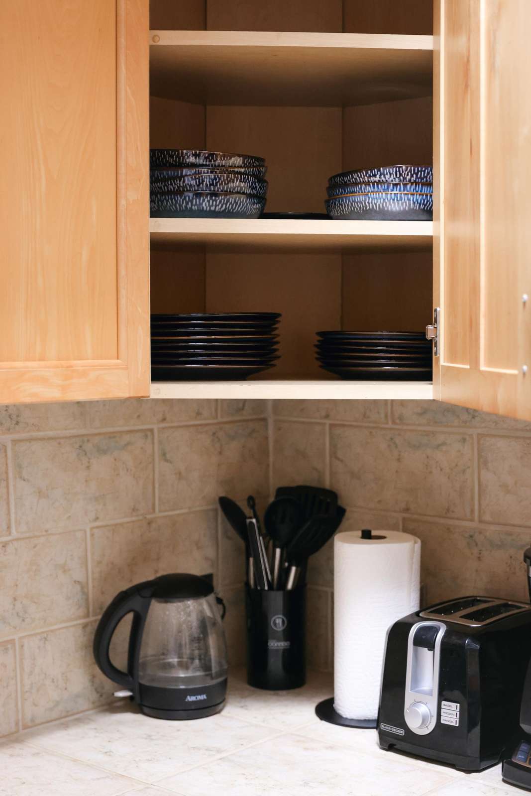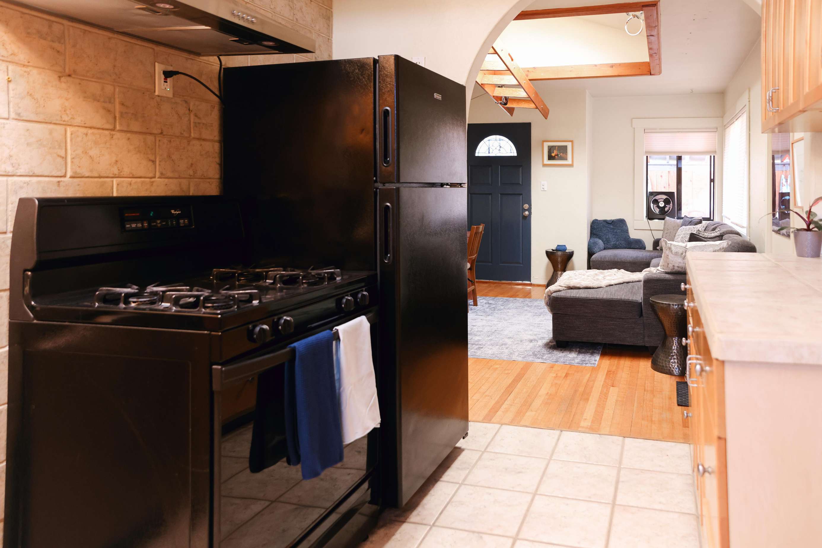 - Additional amenities such as a hot water kettle, coffee maker, wine glasses, toaster, baking sheet and blender for your culinary needs.