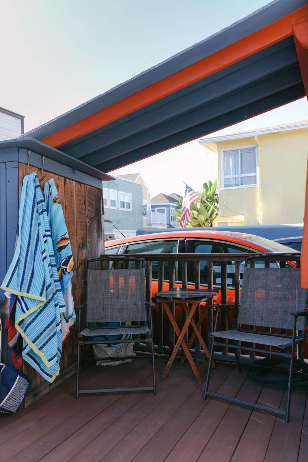Savor your morning coffee on the small outdoor porch, the perfect spot to catch the ocean breeze or brush off the sand before stepping inside.