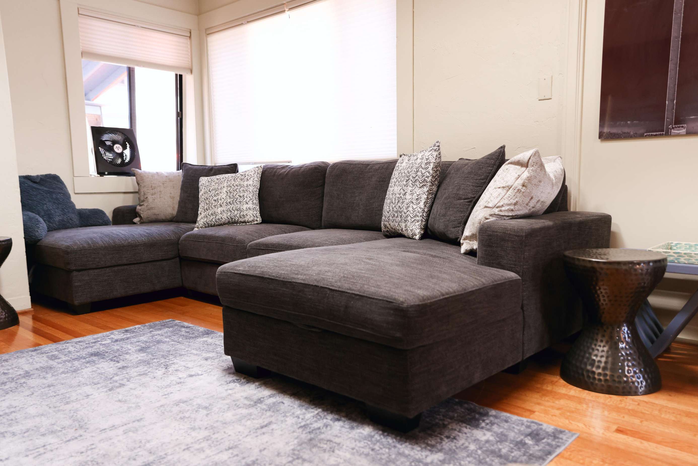 - There are remote control fans in the three main living spaces.