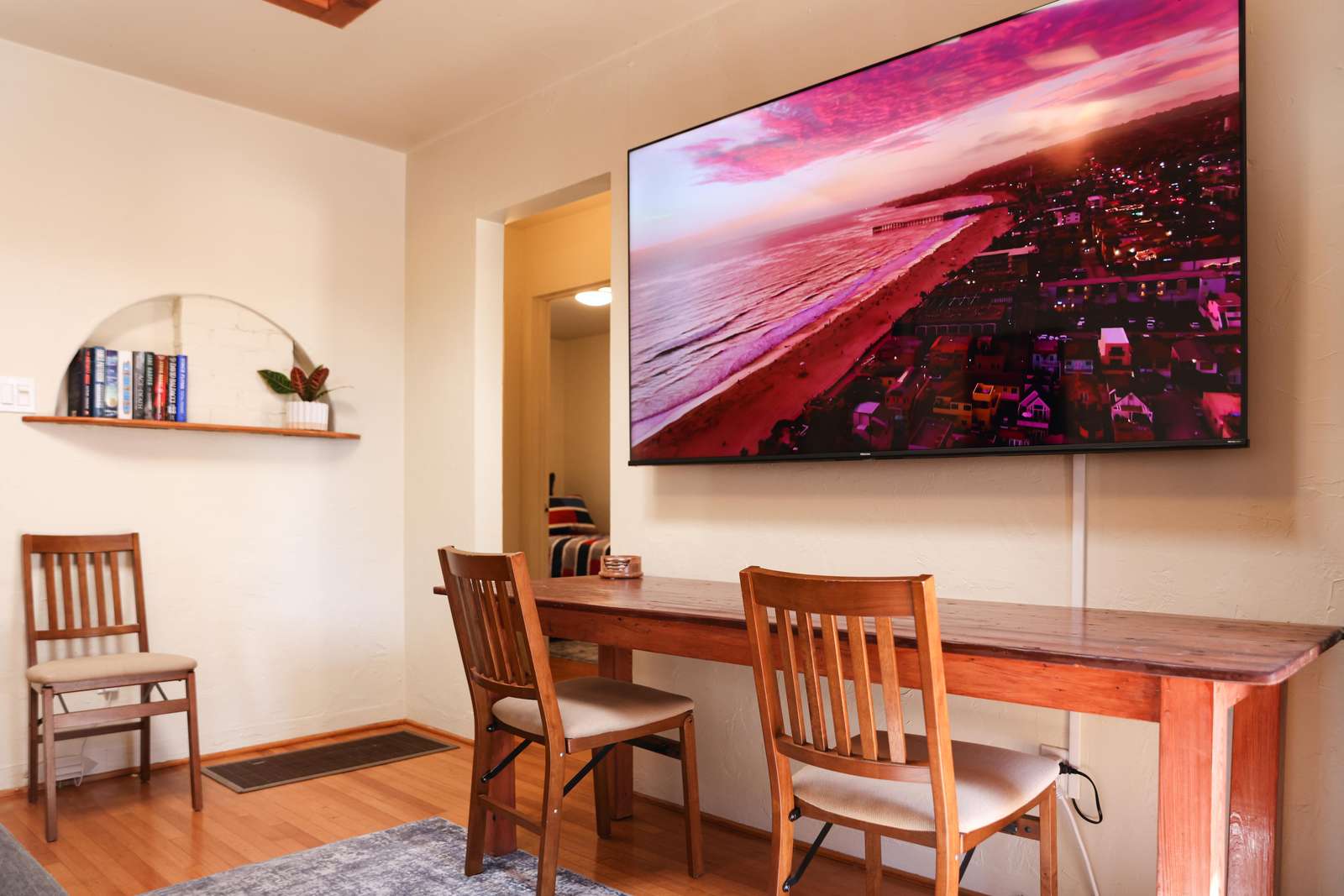 - Large TV with streaming apps for entertainment.